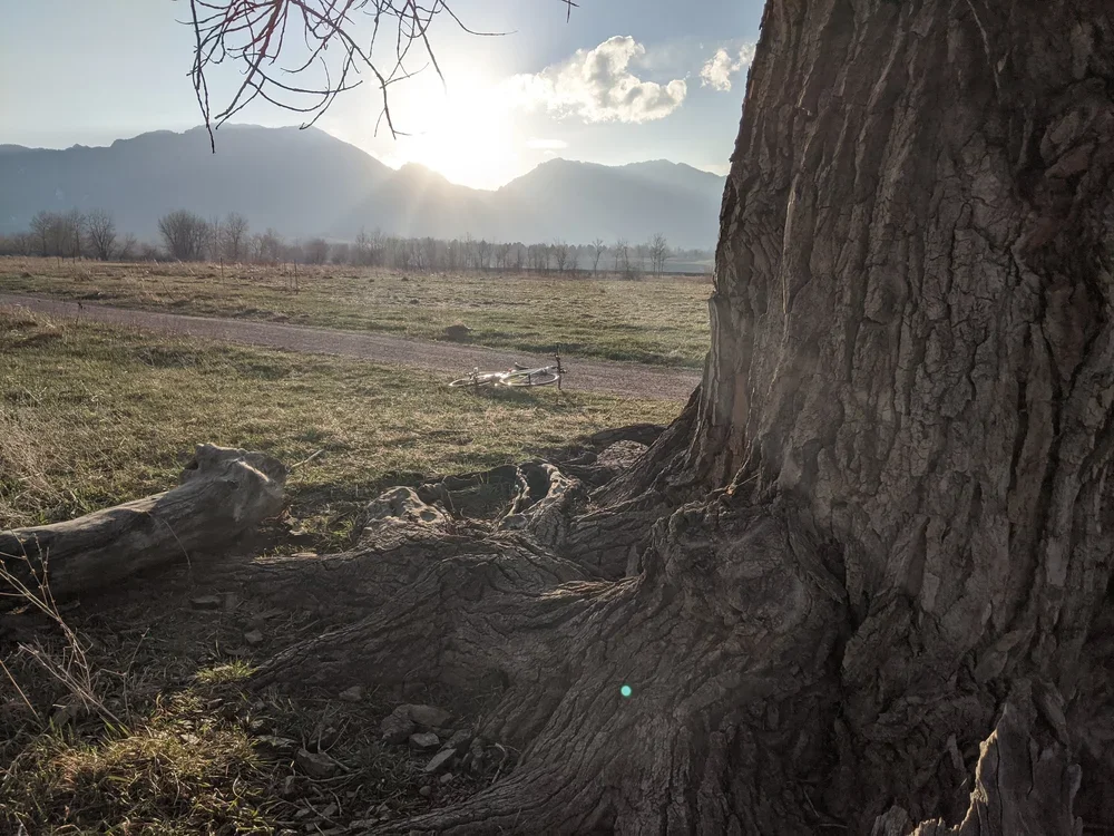 Do you have a special place in nature that you go back to over and over? The South Boulder Creek trail near Marshall has been a special place for many Thorne staff members over the years. Like many of the natural places that we visit, this area acquired a nickname amongst the Thorne staff- Grandmother Tree trail. The nickname came from a giant cottonwood tree that once stood right next to the trail. Unfortunately, this beautiful tree blew over in the Marshall fire windstorm, but the fallen tree remains next to the trail and this is still a fantastic place to visit.
